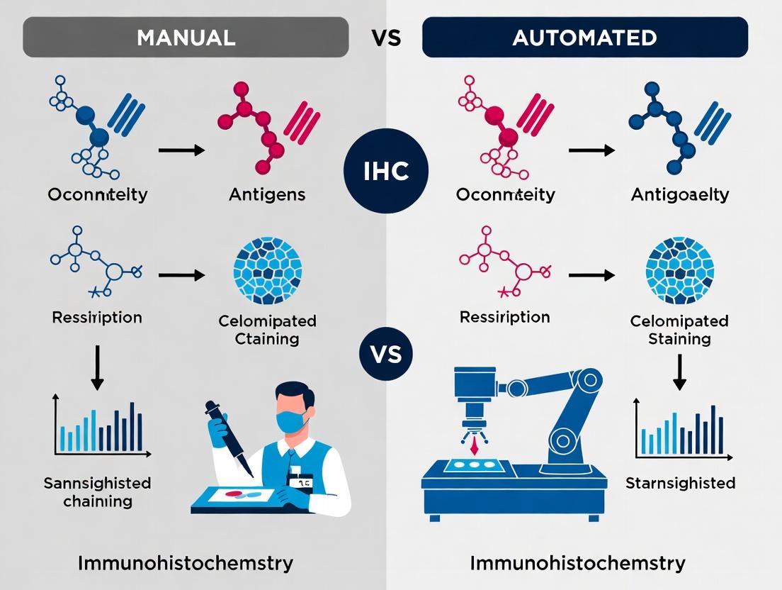 Automated Immunohistochemistry (IHC) staining is defined as the execution of all critical steps in the IHC protocol—baking, deparaffinization, rehydration, antigen retrieval, endogenous enzyme blocking, primary/secondary antibody incubation, detection, counterstaining, dehydration, clearing, and coverslipping—by a programmable, integrated mechanical platform. This platform-based automation is engineered to replace manual, hands-on techniques, operating on core principles of precision, reproducibility, standardization, and walk-away time for the operator.